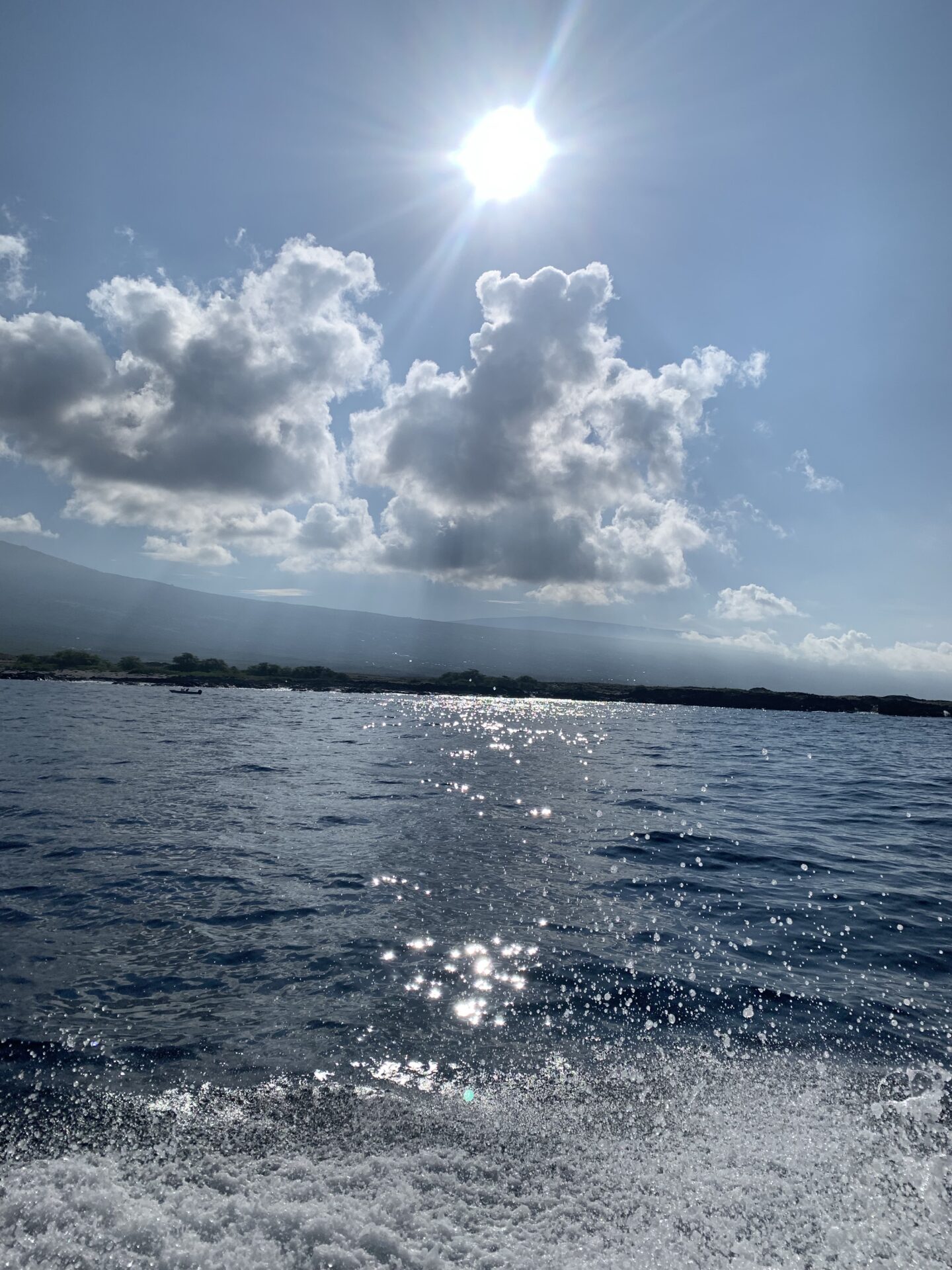 I’ve always been fascinated by the play of light. For instance, have you ever noticed how the dew on early morning grass looks like diamonds sparkling? This week I woke to see the sun glinting off a rose in our garden. The petals were full of tiny dew droplets that were radiating beauty. Today I was blessed to enjoy a boat ride in Hawaii and the early morning sun shimmered across the water as we got underway like gems scattered across the water.